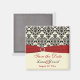 This cream, red, and black damask save the date magnet matches the invitation and other items shown below. You can also customise it to say "Thank You" and use it as a wedding favour for your guests. If there are any other matching items you require, please email me your request to niteowlstudio@gmail.com.