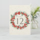 A cream, double-sided, christmas/holiday party table number card featuring hand painted red berries and eucalyptus arranged into a beautiful botanical wreath. All text is fully editable. Other designs, table number products and coordinating items are available in my store.