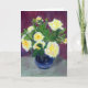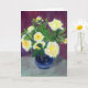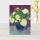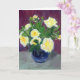A birthday card with an oil pastel painting of a jug of creamy yellow Alchemist Roses.
