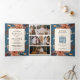Cream Terracotta Floral QR Code Dusty Blue Wedding Tri-Fold Invitation