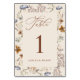 Cream Watercolor Wildflowers Calligraphy Table Number