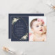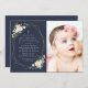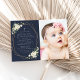 Invite friends and family in style and set the tone for your special day with this elegant first holy communion invitation. Design features white watercolor flowers, greenery and gold frame on navy blue background.