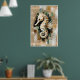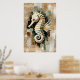 A Cream & White Seahorse Drifts on an Abstract Background. Brown Vintage Book Pages Surround the Seahorse with an Abstract Earthen Tone Colour Palette. Ocean Academia Inspires this Digital Print.