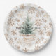 Cream White Snowflakes Christmas Tree Paper Plate