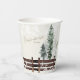 Baby Shower paper cups. Snow. Baby it's cold outside. Cream background. Gold text. Neutral. Fence. Rustic. Woodland.