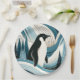 Creamy Sky Blue Penguin In The Ice Winter Forest Paper Plate