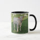 A photo portrait of a cream coloured Charolais calf standing in a field in dappled sunlight on each side of a mug, with Charolais written on a central band of green.