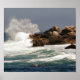 At the Monterey Peninsula the coastline is rocky, the water is rough, and the waves are strong. The area is known for the splashes that fan out above the rocks. I was fortunate to catch this one in a photograph. The area often has fog hanging in the distance, especially in autumn.