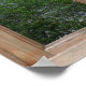 If you always wanted a private sea view, this picture that looks like a window will give you just that effect in your own home. A cosy wooden frame creates the look of a real window from which you can gaze out at the ocean beyond. The sea is blue but slightly choppy and you can see the white crests of the waves. In the foreground are green trees, and in the distance you can see hazy hills. A large boat sits on the horizon. The sky is blue with fluffy clouds. Very peaceful and relaxing.