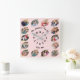 Create Custom Family Photo Collage Pastel Pink Square Wall Clock