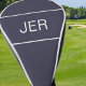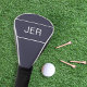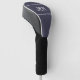 Midnight blue golf head cover features monogram initials in crisp white shadowed font—customisable for a stylish and functional sports accessory.