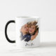 Create your own custom, personalised, elegant black handwriting calligraphy typography script font, strong, ceramic, cool unique graffiti / torn photo effect, special heat-sensitive coating colour changing hot beverages / tea / coffee / cocoa mug. To customise, simply type in your text, and add 2 of your favourite family / couple / kids / baby / pets / wedding / travel photos. While you add / design, you'll be able to see a preview of your creation, throughout. Makes a great gift for birthday, fathers day, mothers day, christmas, holidays, wedding, marriage anniversaries, valentine’s day, honeymoon keepsake, grandparents day, family reunions, friendship day, milestone birthdays, remembrance, memento, and more, for your loved ones, girlfriend, boyfriend, mum, dad, husband, wife, couples, newlyweds, bride, groom, new parents, pet dog / cat / puppy / kitten, friends and family.