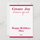 Place a colourful ornament on a new tree and create joy for everyone who walks by. Create Joy Christmas Holidays Ornament Pine Tree Party Holiday Card. A few years ago, someone placed a lone red ornament on a young pine tree in a park, giving me a little bit of joy on an otherwise grey and gloomy December day. Reminiscent of the Christmas tree in that famous holiday TV cartoon, the single red ornament is a reminder that each of us has the power to create joy everywhere and anywhere we are, whenever we can. Design description: A black and white photograph of a lone young, scraggly pine tree, with several small branches at the top, but very empty at the bottom. Along a lower branch, a red ornament brightening the photo. Above that branch, a template with the word "create." To the right of the branch and on the other side of the skinny trunk is the word "joy." Both words are in a bright happy red. On the back, at the top and the bottom is a red line in a slighter darker red taken from the colour of the ornament. The text on the back is all in red and can be changed. The text contains templates. The two templates at the top read, "Create joy," "whenever you can." There's then a blank spot in the middle for you to write a personal message or your names or past a small photo or otherwise personalise it. At the bottom are two more templates, which read "Happy Holidays" and "20xx".
