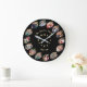 Create your own custom, personalised, cool, unique, modern, elegant faux gold calligraphy typography script font on black background, one-of-a-kind, memories, graffiti / torn photo effect 14 photo collage family keepsake classic round shape wall clock. To customise, simply type in your family name & year, and add fourteen of your favourite family / couple / kids / baby / pets / wedding / travel photos. While you add / design, you'll be able to see a preview of your creation, throughout. Perfect for your home, living room, kids room. office. Makes a great gift for birthday, fathers day, mothers day, christmas, holidays, wedding, marriage anniversaries, valentine’s day, grandparents day, family reunions, friendship day, milestone birthdays, remembrance, memento, and more, for your loved ones, girlfriend, boyfriend, mum, dad, husband, wife, parents, grandparents, grandma, grandpa, couples, newlyweds, bride, groom, new parents, pet dog / cat / puppy / kitten owners, friends and family.