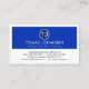 Cover features an upper blue layer that is encapsulated by a white rectangular frame. At the top is an empty white circle logo where you can place your name initials-monogram (You can use different sizes of fonts or styles to your liking). Underneath this lies your prestigious name and job title with the contact details at the base of the card.