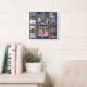 Create Your Own 10 Family Photo Collage Blue Square Wall Clock