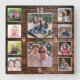Photo collage clock to personalize with 10 of your favorite photos on a rustic wood background.