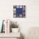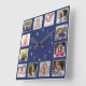 Create Your Own 12 Family Photo Collage Blue Square Wall Clock