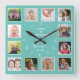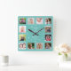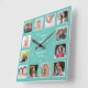 Create Your Own 12 Family Photo Collage Teal Square Wall Clock