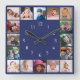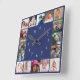 Create Your Own 16 Family Photo Collage Blue Square Wall Clock