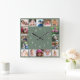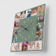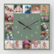 Create Your Own 16 Family Photo Collage Green Square Wall Clock