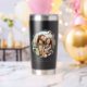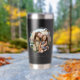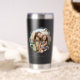Create your own custom photo insulated tumbler. This tumbler cup features two of your favorite pictures in a circle shaped watercolor brush stroke frame and personalized text for any occasion. A great gift for family and friends or your own photo memory keepsake.
