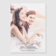 Create your own simple 2-photo wedding Save the Date magnetic card with a modern handwritten script font.