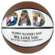 Great quality basketball. Looks aweaome! Actual size. My Goddaughter is going to LOVE it! Putting it in her basketball themed playroom! So glad I ordered it! Highly recommend! Printing quality looks great! Color is as advertised.