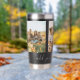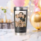Create your own custom photo insulated tumbler. This tumbler cup features three of your favorite pictures and personalized handwriting calligraphy text for any occasion. A great gift for family and friends or your own photo memory keepsake.