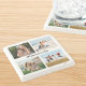 Create your own custom photo coaster featuring 4 of your favourite pictures in a simple photo collage grid alongside personalised text in modern script style.