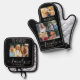 Create Your Own 6 Photo Collage Family Name Black Oven Mitt & Pot Holder Set