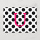 The monogram letter is customisable. You can delete the letter image and use the system to choose a bright pink colour and your favourite font. If you like this shade, the code is FF0066. Bright pink letter U with a white and black polka dot pattern background.