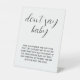 Create Your Own Black & White Don’t Say Baby Game Pedestal Sign. Customise your own black & white "Don't Say Baby" game sign! Perfect for baby showers, this elegant pedestal sign sets the rules in style. Personalise the text, font, and layout to match your theme. Fun, interactive, and uniquely yours!
