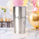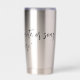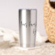 Create your own custom quote thermal tumbler. Features minimalist calligraphy typography.