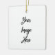 at christmass as a hanging decration for the chritmass tree.. its white porcline or cramic but very well made with added photo on one side.. also has a lovley red bag to keep it in.. execlent printed text in bold and black stands out well aganst the blue background of the photo.
