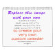 Create your own personalised calendar - We have made this SO Easy, just replace the images with your own, we added which size images for you to use depending on the calendar size you want - Make your own personalised Calendar - Add your own photos, artwork or designs to this Custom Create Your Own calendar - Add text too- change fonts, size and colours of fonts to suit your needs. Make sure to see the drop downs for Culture, Holiday choices, Start Date, Size, binding colour etc. all the choices on the right side before you order -