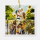 Create your own custom photo Christmas ornament featuring two of your favorite picture memories and reverse side with Merry Christmas or custom text in minimalist calligraphy alongside name and year.