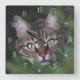 A simple and minimal custom cat photo square wall clock featuring one photo and white clock numbers. Simple to customise by adding one of your own photos.