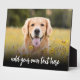 Create your own custom photo display plaque featuring one of your favorite pictures alongside personalized text in script calligraphy.