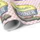 Create your own custom, 1950's style diner sign wrapping paper using this easy template. This cool retro design has a slightly distressed pink-and-white chequered background. On top of it, a sign is tiled that says "DINER" and "OPEN" in neon with space for you to add your own first or last name - or any other word you'd like. The sign also has a lighted arrow graphic. It's all done in shades of pink, white, black, blue, yellow, grey and red. Fill in the DIY template or "Customise It" if you need to resize, rearrange or change text colours & fonts. This wrapping paper is perfect for wrapping holiday or birthday goodies that come straight out of your kitchen.