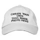 Create Your Own Custom White Personalised Embroidered Baseball Cap. Simply upload your design or use customisation panel here for free to make your own design. Customise and personalise with your unique design ideas. Black and white cap options available with a large numbers of premade designs and fonts available. Create custom sports caps- Baseball caps, basketball and football jersey number or one word hat and caps, personalised monogram caps and hats or hats and caps customised for boyfriend, girlfriend and more.