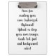 Have fun creating your own customized and personalized Clipboard. Choose your own background color or upload an image you love. Add your favourite text if it takes your fancy or keep it simple. Create the perfect Birthday or Christmas gift for your loved ones.