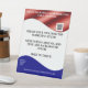 The top and bottom edge of this desktop stand have a red and navy blue wave banner set against a background colour of your choice and templates in black and white for your personalised wording. You can add photos, logos, art work and your choice of font sizes, styles and colours. Move things around and make it unique. Available in different sizes.