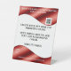 The top and bottom edge of this desktop stand have a Burgundy maroon red wave banner set against a background colour of your choice and templates in black and white for your personalised wording. You can add photos, logos, art work and your choice of font sizes, styles and colours. Move things around and make it unique. Available in different sizes.