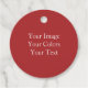 This product was just as I hoped it would be. I used these tags to go on the M&M favors for my brother and future SIL's bridal shower. An outline for the holes were already made in the tags, so I just needed to physically push the piece out to expose the holes in order to thread ribbon through. Overall, I am very happy with this product and would certainly order again if the occasion for these tags arises. The printing was perfect! The colors were just as pictured on the website.