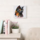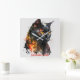 Create Your Own Fiery Black Cat Bust Square Wall Clock