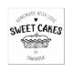 This " Homemade Sweet Cakes" rubber stamp features a pie with custom name.