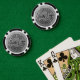 These custom poker chips let you showcase your company logo or design on a faux metallic silver background on both sides, creating a sleek black and white look. Each side features a circular layout with your uploaded image or logo, giving the design a bold and polished effect.
