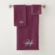A set of minimal washcloths and towels featuring yours or your gift recipient's custom name and monogram against a Teal colour backdrop. If your bathroom scheme is a separate colour feel free to use the customisation function to change each washcloth and towel to your personal colour choice.