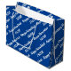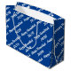 Create Your Own Name Happy Hanukkah Large Gift Bag with a blue background.